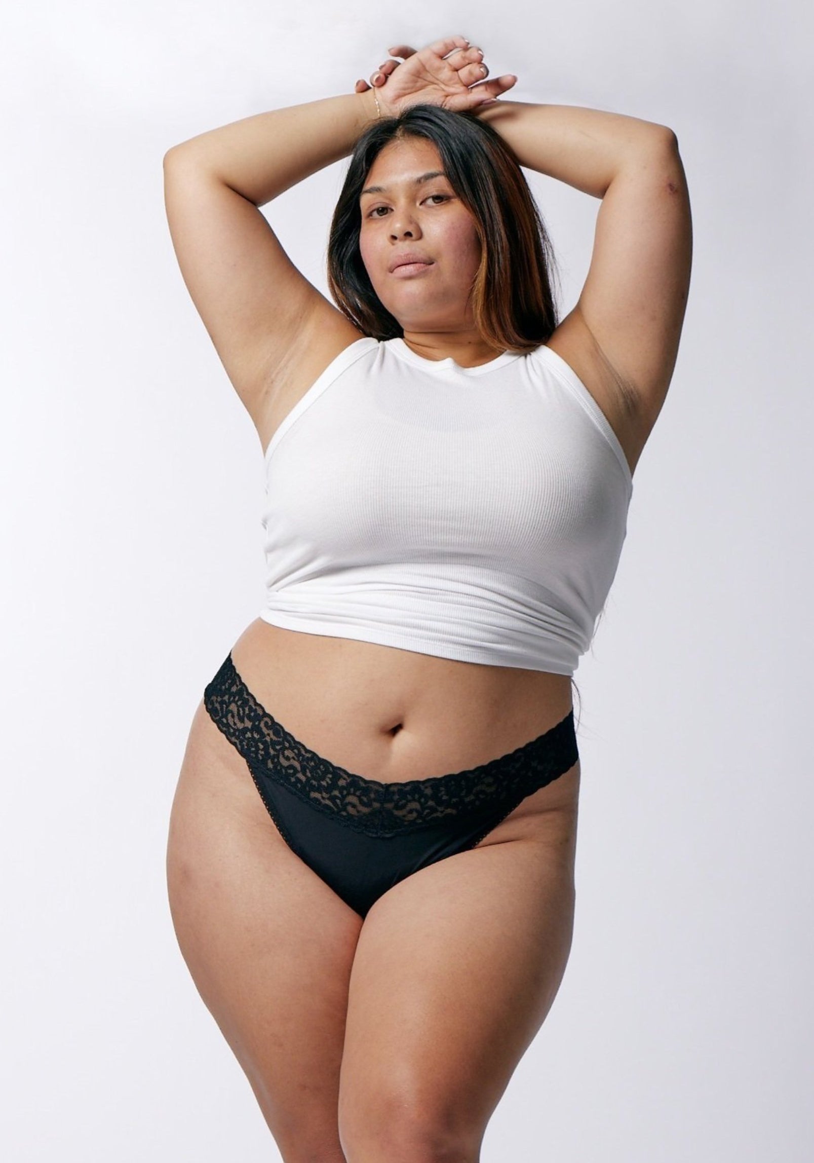 This ultra-flattering thong features a stretchy v-cut waist & supersoft microfiber body. Party on the top, business on the bottom.